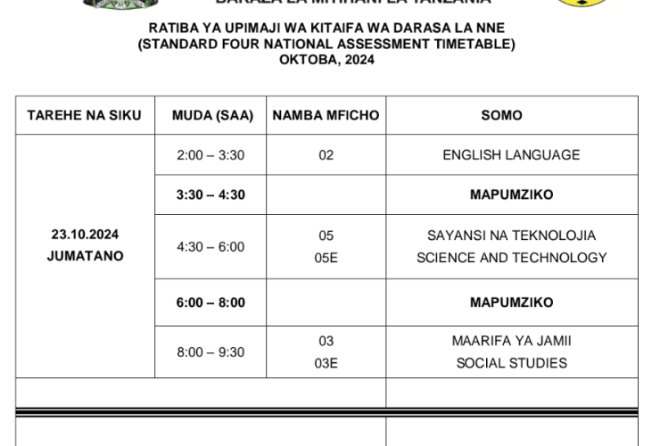Ratiba ya Mtihani Darasa la Nne 2025 SFNA Exam Timetable | Katika makala hii, unatafuta ...