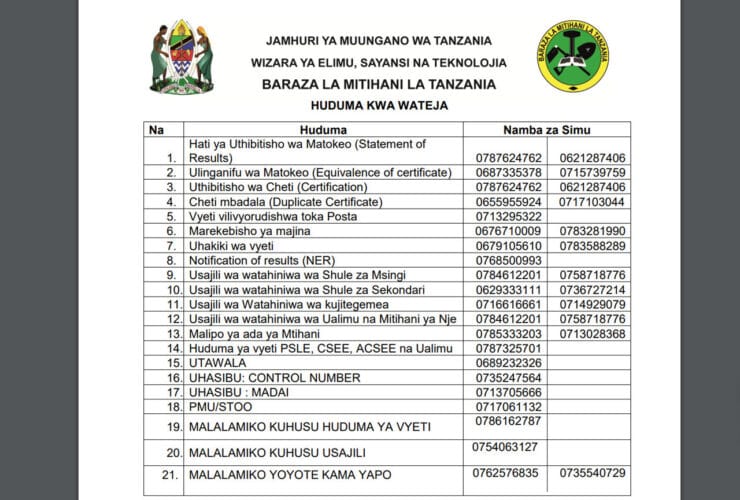 Namba za Mawasiliano za Baraza la Mitihani Tanzania (NECTA) 2024 Katika ulimwengu wa leo unaoendeshwa ...