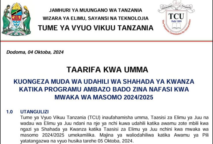 TCU Yatangaza Dirisha la Tatu la Udahili Vyuo Vikuu 2024/2025 Tume ya Vyuo Vikuu Tanzania ...