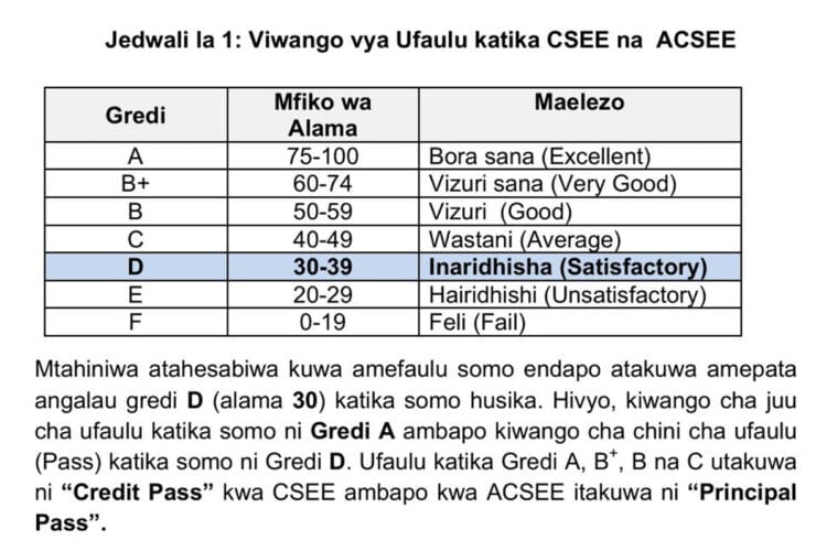 Alama za Ufaulu Kidato cha Sita: Viwango na Maelezo Muhimu Baraza la Mitihani la Tanzania ...