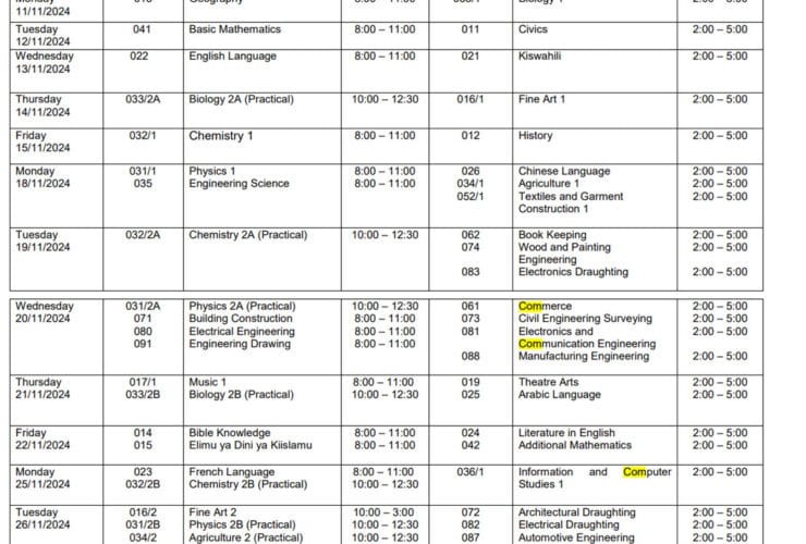 Ratiba ya Mtihani wa NECTA Kidato cha Nne 2024 | Ratiba ya Mtihani wa Form ...