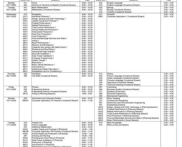 Ratiba ya Mtihani wa Taifa wa Kidato cha Pili 2025, Baraza la Mitihani la Taifa ...
