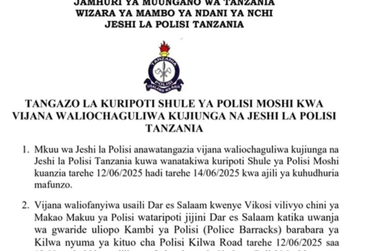 Majina ya Waliochaguliwa Kujiunga Shule ya Polisi Moshi June 2025 | Jeshi la Polisi Tanzania ...