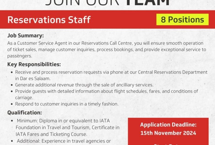 Nafasi za Kazi Flightlink Tanzania- Reservations Staffs (Mwisho Nov 15) Shirika la ndege la Flightlink ...
