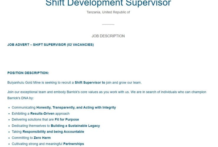 Nafasi Mpya za Kazi Barrick Gold Mine Tanzania Septemba 2024 Barrick Gold Mine, mmoja wa ...